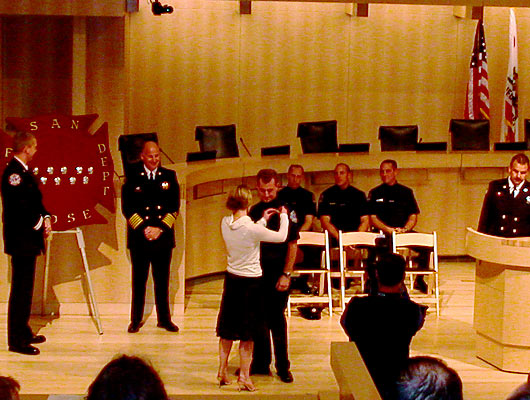 The rigors of San José Fire Academy are over and the challenges of a year’s probation are about to begin. But for a brief moment in time, the focus is on celebration and ceremony, honoring the accomplishments of Mike and his fellow recruits. Out of a pool of over 5,000 applicants, 26 recruits were chosen via a multi-tiered process of interviews, physical and written exams and exhaustive background checks. Friday night 22 of them became bonafide San José Fire Fighters.